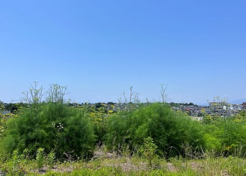 諸磯埼から続きです。 諸磯埼灯台と相模湾 浜諸磯をあとにして三崎へ向かいます。 丘へ上がって海岸をふり返り 浜諸磯陸橋から 前方が三崎方面、見えている道には下りず 陸橋を渡って5~600m先で右折、坂道を下ります。坂道の名前は「屁っぷり坂」 「白秋文…