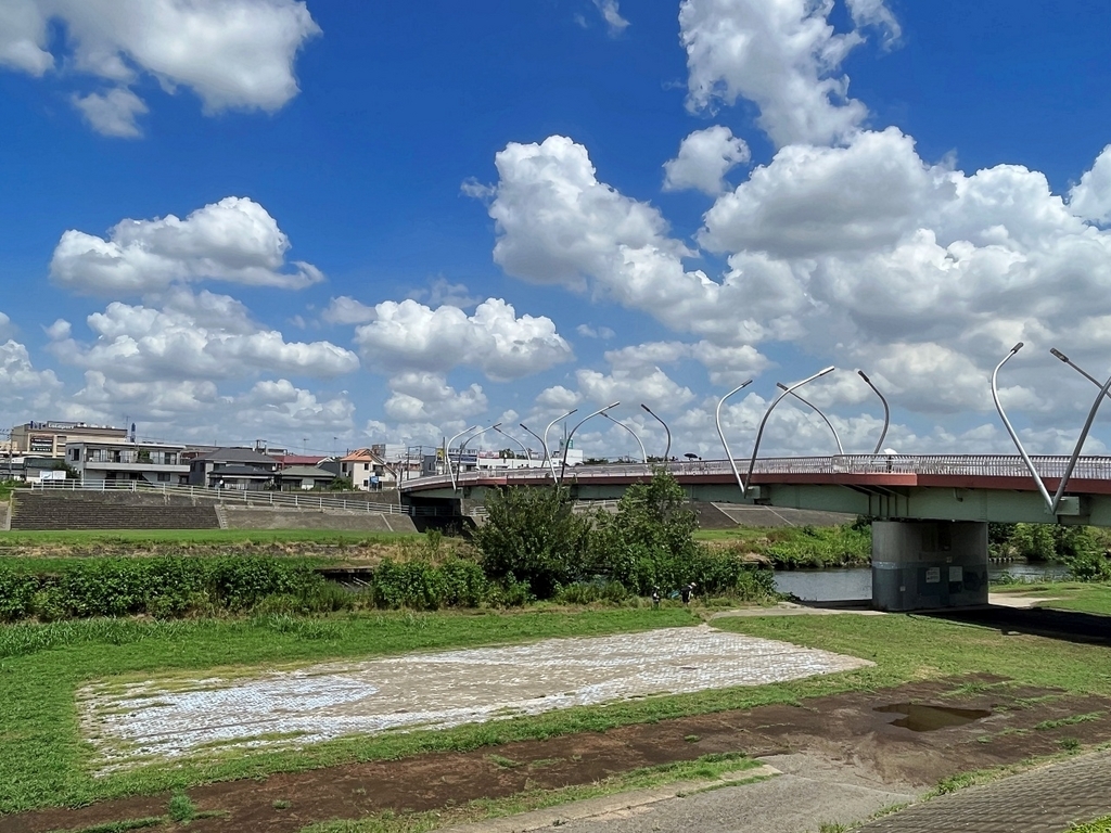 鶴見川この先、河口までは17~18kmあります。そんな先まで歩いて行く気は元々なかったのですが、この日は思っていたより早く疲れが出てきてしまいました。〈気温35℃だって〉