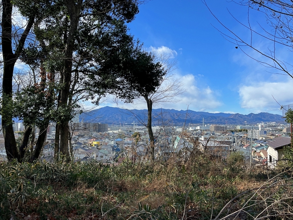 古墳群から西を望むと、現在「海老名耕地」と呼ばれる水田と南北に流れる相模川が一望に見渡せます。また相模川の向こうには、丹沢山塊や大山を望むことができます。