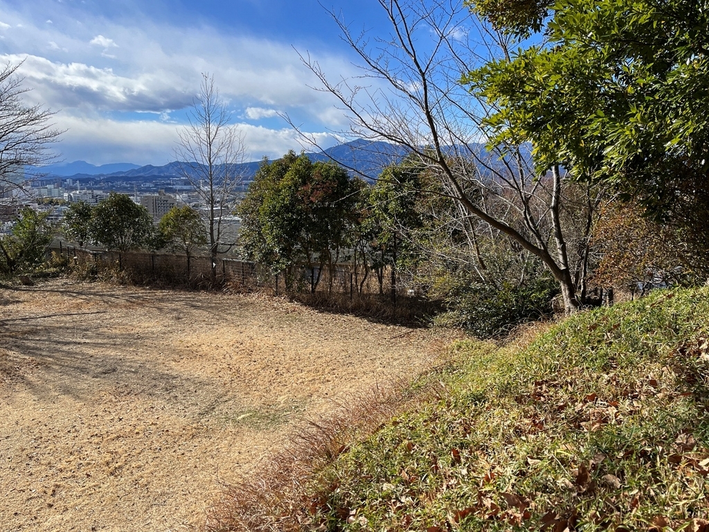 東側の谷間が見えてます。1~3号墳は特に小高く造られている印象があったので谷間からもぽっこりとした墳丘がよく見えたと思います。〈現在は木があって見えにくいかと〉
